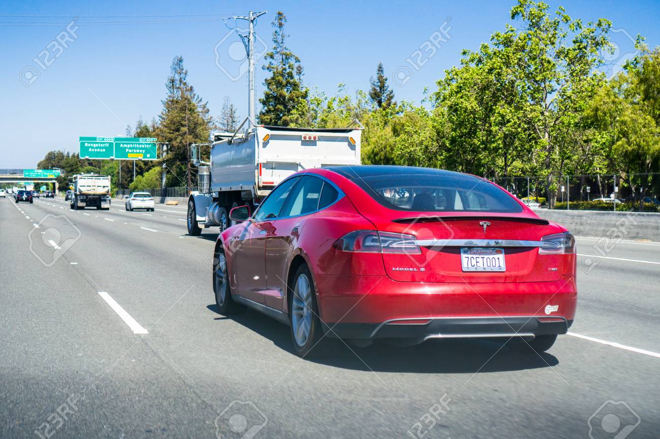 May 2 2018 Mountain View Ca Usa Tesla Model S P85 Driving